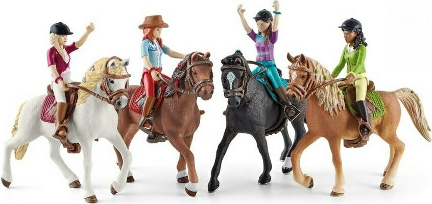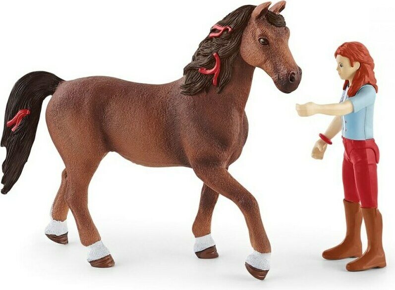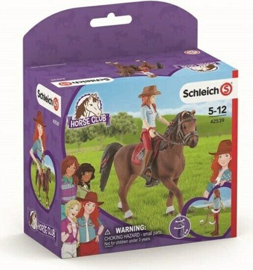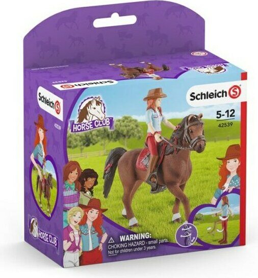 Tuotteen kuvausMitat 15,5 x 5 x 18 cm (L x S x K) Ikäsuositus 5-12 Vuotta Horse Club herää eloon – upeat, uudet tyttöhahmot ja seikkailulliset tarinat, jotka liittyvät Horse Clubiin, joka koostuu neljästä hevosten ystävästä Hannah’sta, Sofiasta, Lisasta ja Sarah’sta. Hannah-hahmo on täysin liikuteltava! Hahmo, satula ja suitset ovat irrotettavissa! Schleich®-hahmot on muotoiltu yksityiskohtaisesti ja ne edustavat pedagogisesti arvokasta leikkimistä. Tuote kuuluu Horse Club -teemamaailmaan ja sopii 5–12-vuotiaille lapsille. Sisältö1x tyttö, 1x hevonen, 1x ratsastuskypärä, 1x satula, 1x suitset ja ohjat, 1x rannekoru Varoitus! Helposti nieltäviä pieniä osia. Tukehtumisvaara.
