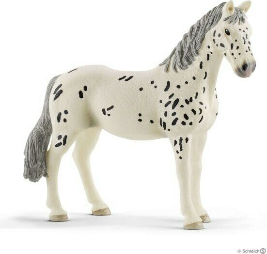 Knabstupinhevoset ovat peräisin Tanskasta ja ne ovat erinomaisia terapiahevosia. Myös pelokkaat ihmiset luottavat niihin nopeasti. Johtuuko se niiden valkoisen turkin hauskoista, tummista pilkuista vai niiden tasapainoisesta olemuksesta? Schleich® Horse Clubin upeasti maalattu knabstrupinhevostamma houkuttelee heti leikkimään kanssaan rennolla ja ystävällisellä asennollaan.