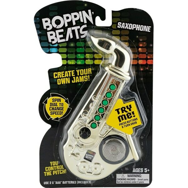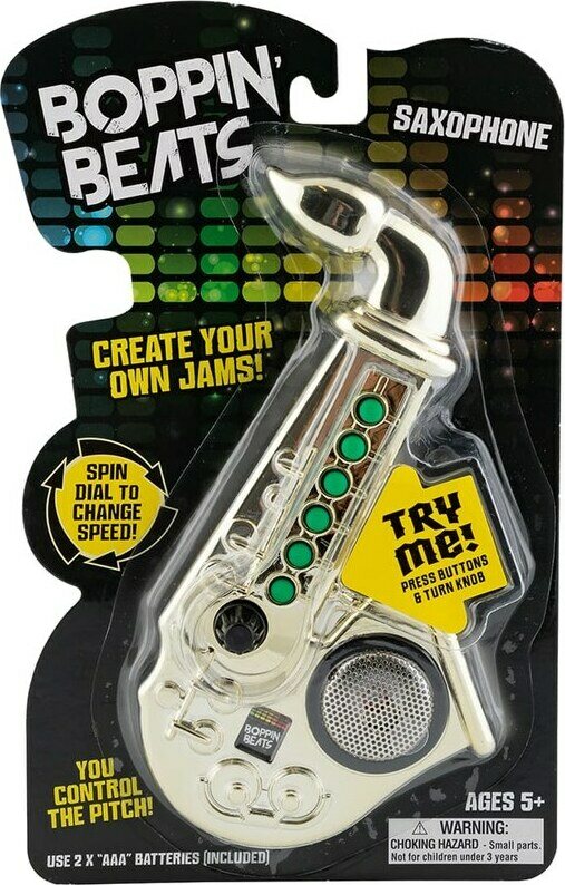 Tuotteen kuvausPieni lelusaksofoni musisointiin. Luo omat biitit ja jamit säätelemällä ääntä, sävelkorkeutta ja tempoa soittimen säätimillä. Saksofonin korkeus on n. 18 cm ja sen ikäsuositus on 5 +. Sarjaan kuuluu myös muita pieniä lelusoittimia.