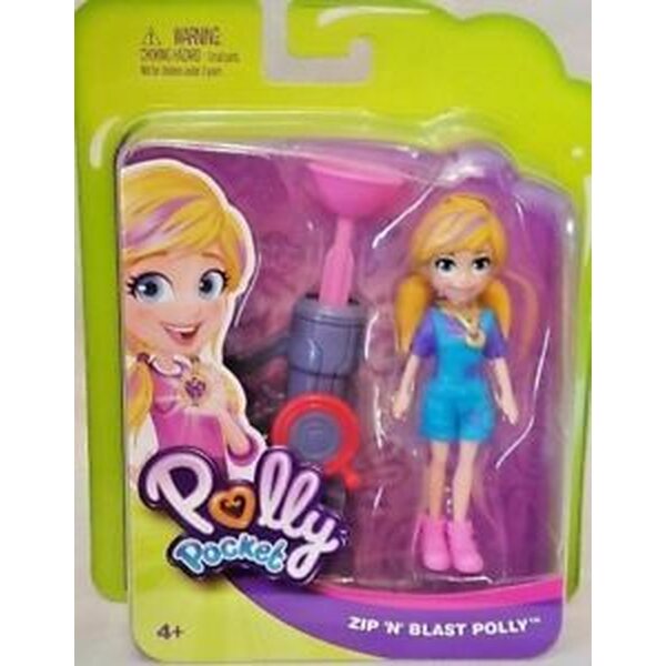 Muovinen Polly Pocket ZIP'N'BLAST POLLY- nukke 9 cm trendikkäillä vaatteilla. Ei sovellu alle 4- vuotiaille.