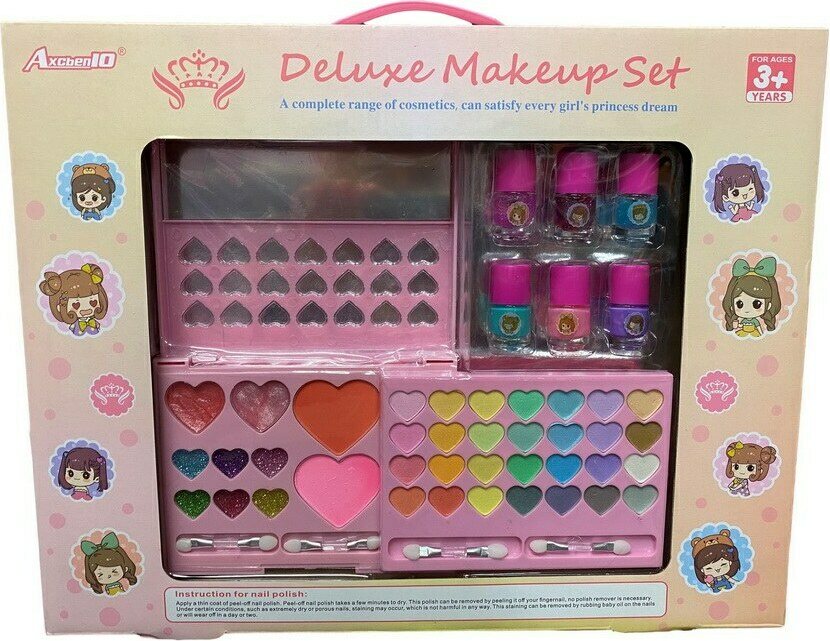 Jokaisen kaunistautujan unelmameikkisetti! Peseytyy pois vedellä ja tarvittaessa miedolla pesunesteellä. Ikäsuositus 5+. Tuotteen mittatiedot: 42 x 33 x 4,5 cm – 0,655 kg