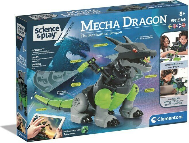 Rakenna itsellesi mahtava 44 cm korkea robottilohikäärme! Interaktiivisessa robotissa on 22 toimintoa ja 3 peliasetusta ja sitä ohjataan joko mobiiliapplikaatiolla, mukana tulevalla pillillä tai käsien taputuksilla. Ei sis. paristoja 4 x AA. 8+