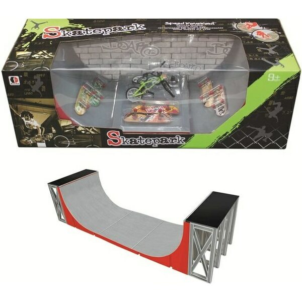 Ramppipakkaus sormiskeittilaudoille ja bmx pyörille. Pakkaus sisältää rampin, bmx pyörän, 6 sormiskeittiä, sekä vaihtorenkaat pyörään ja kolmeen lautaan. Pituus n. 50cm Ikäsuositus 5+