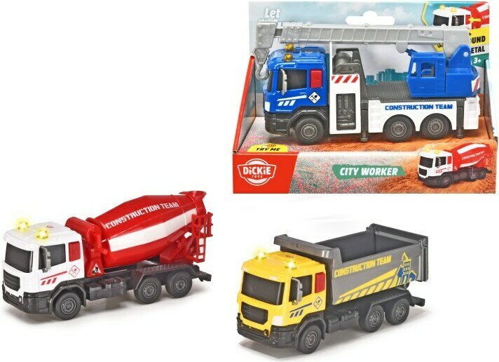Työmaa-ajoneuvon pituus on 17 cm. Ääni ja valotoimnto. Auton nuppi on metallinen. Paristontarve on 3x LR 41( sisältyy )' Ikäsuositus 3+ vuotta.