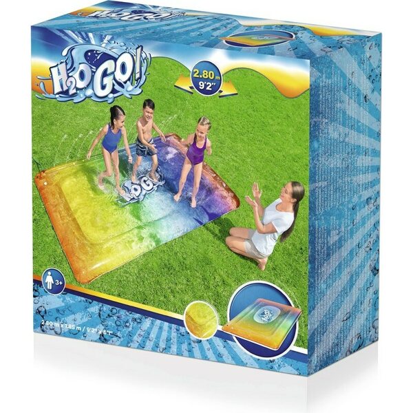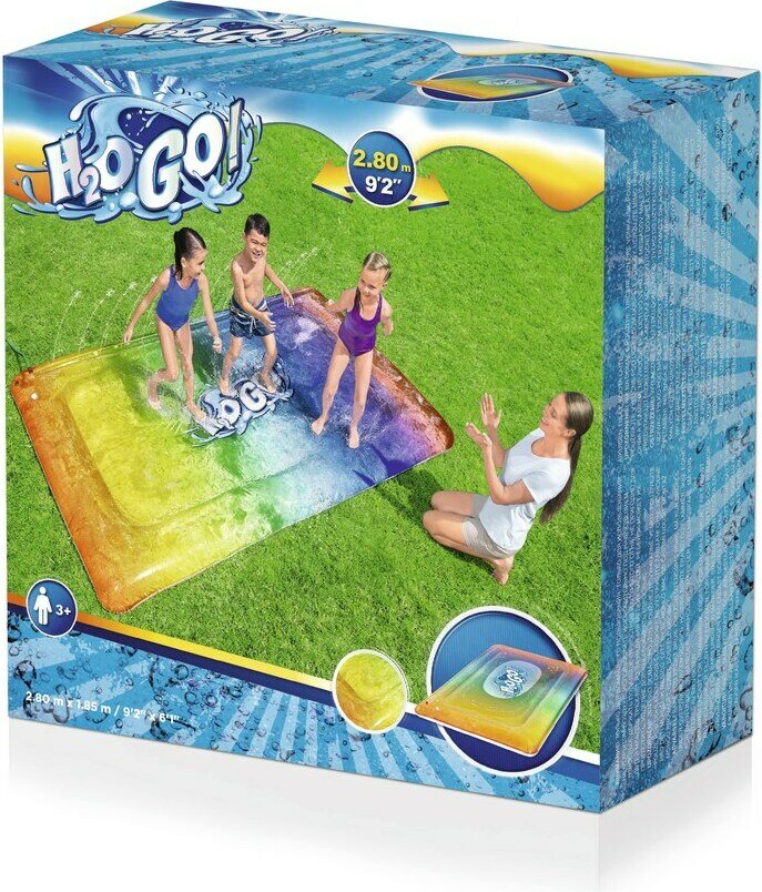Vesi täyttyy patjan päällä olevan suuttimen kautta ja tuottaa viileän ja mukavan leikki- tai oleilualustan. Vakautta lisäävä sisäinen palkki. Kun yhdistät tuotteen puutarhaletkuun, voit nauttia alustan päälle suihkuavasta vedestä. Tyhjennä vesi yläpinnalla olevan suuttimen kautta tai alustan pohjassa olevan poistoventtiilin kautta. Vesikapasiteetti: 800 litraa. Mukana korjauspaikka. Ikäsuositus 3+.