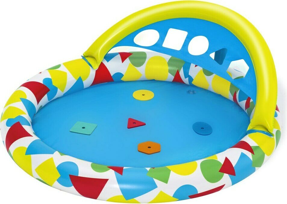 Allas soveltuu sekä sisä- että ulkokäyttöön. Käytä ulkona altaana tai pallomerenä/leikkialustana sisällä. 5 vaahtomuovikuviota ja niille sopivat kolot kuomussa/katoksessa tarjoavat lapsellesi hauskoja leikki- ja oppimishetkiä. Vesikapasiteetti 45 litraa. Mukana korjauspaikka. Ikäsuositus 4 kk+.