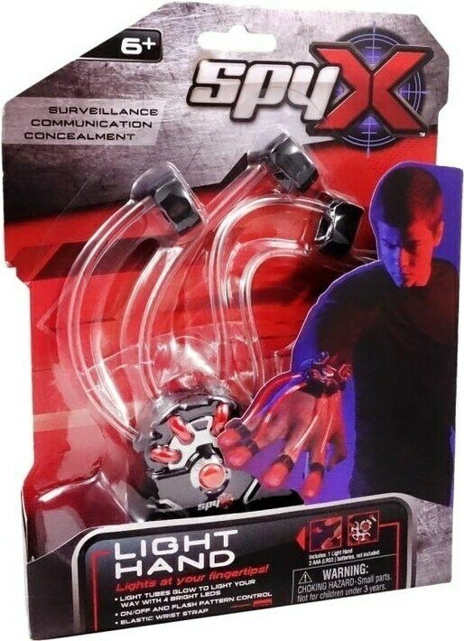 SPY X LIGHT HAND valaisee kätesi ja sormenpääsi. Ranteessa elastinen rannehihna. Ikäsuositus 6+ Paristot: 2x AAA (ei sisälly)