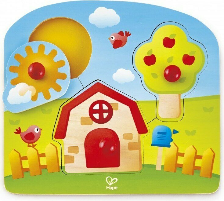 Puinen ensipalapeli, jossa on kolme erilaista palaa. Isot nupit, joihin on helppo tarttua. Jokaisen palan alla on aiheeseen sopiva väritunniste. Tuotteen koko: 22x4x21 cm. Paketin koko: 23x4x25 cm. Ikäsuositus: 1+.