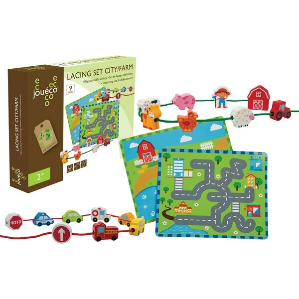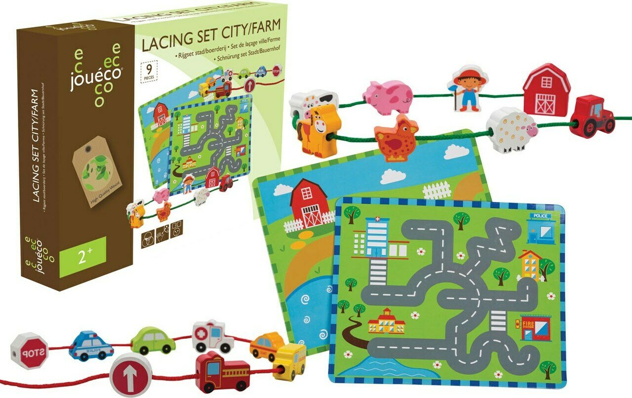 Kehittävä lelu lapselle. Pujotetaan nauhaan tai voi leikkiä alustalla, alustan koko n. 25 x 21 cm.