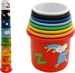 Rakentaminen on kivaa! Nämä värikkäät, kuvalliset purkit voi helposti pinota yhdeksi tai useammaksi torniksi. Purkkien korkeus päällekkäin on 56 cm.