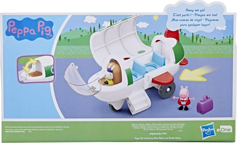 Toiminnot ja ominaispiirteet: lentokoneessa 4 avautuvaa tai laskettavaa kohtaa: ohjaamo, matkustamo, portaat, tavaratila, Pipsa -hahmo, 1 lisätarvike tavaratilassa, ohjaamossa kiinteästi istuva Rouva kani. Ikäsuositus 3+.