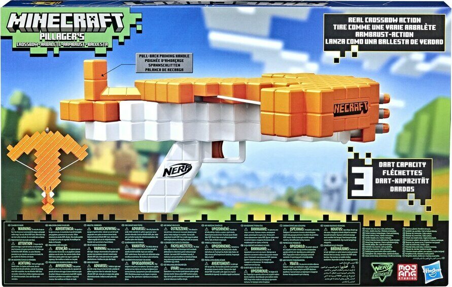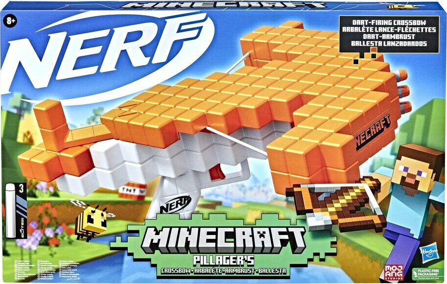 Tämä nuolia ampuva Nerf Minecraft ?varsijousi perustuu Minecraft-videopelien varsijouseen. Kolme nuolen kapasiteetti. Ikäsuositus 8+.