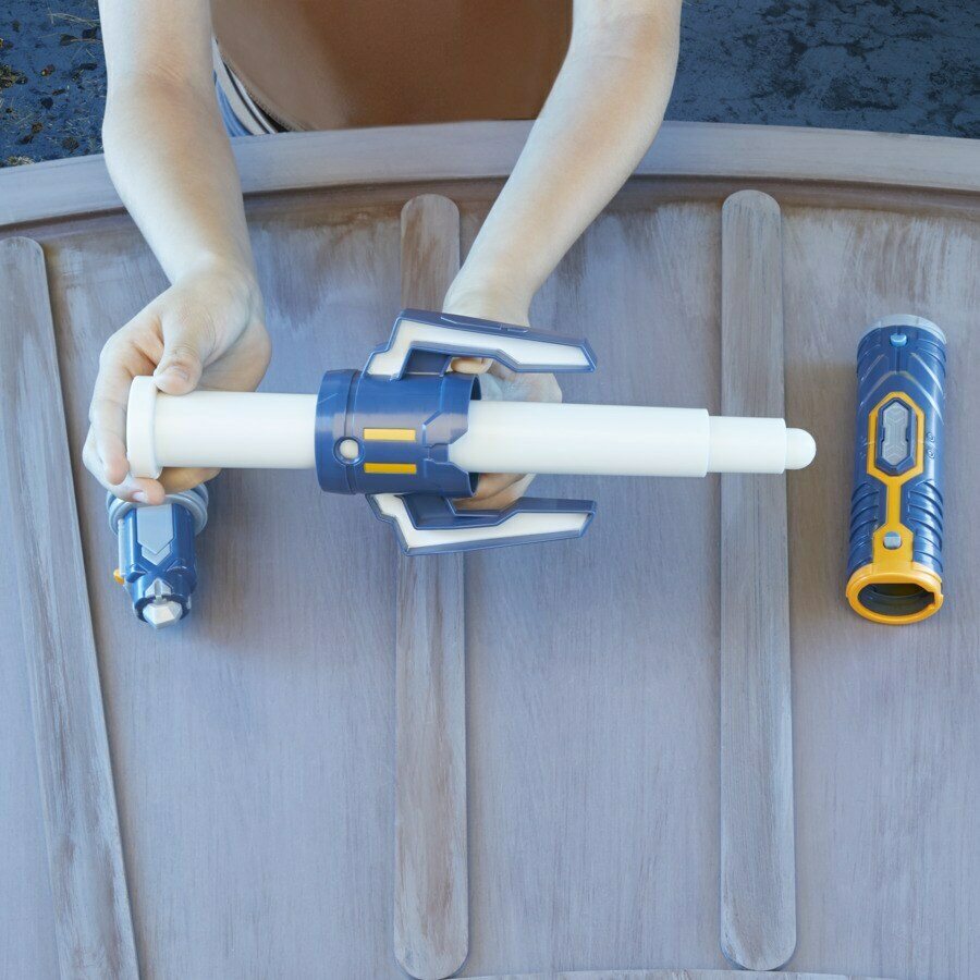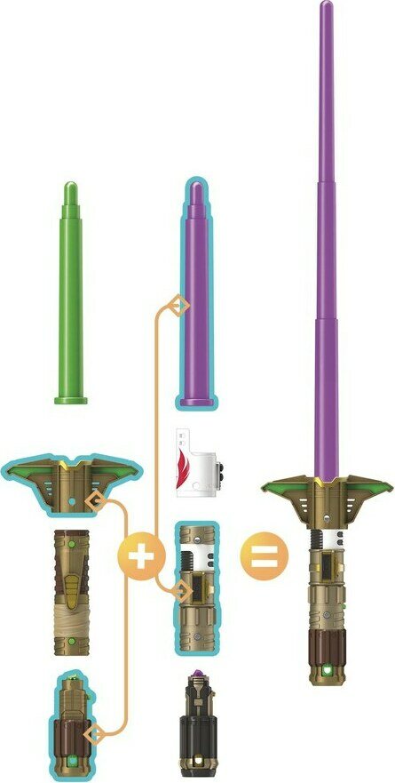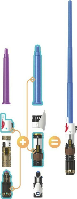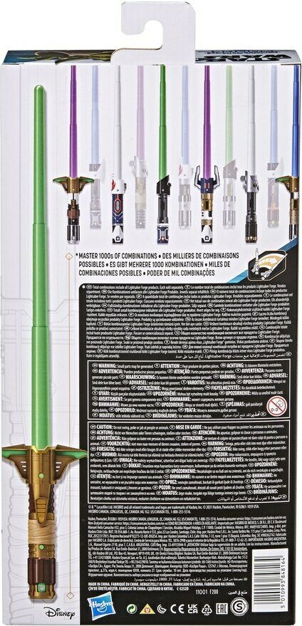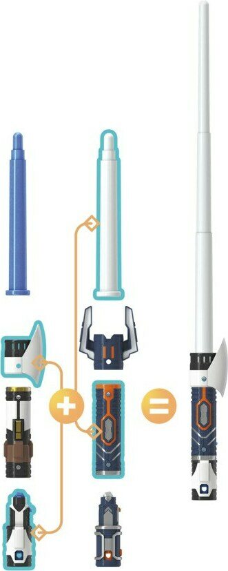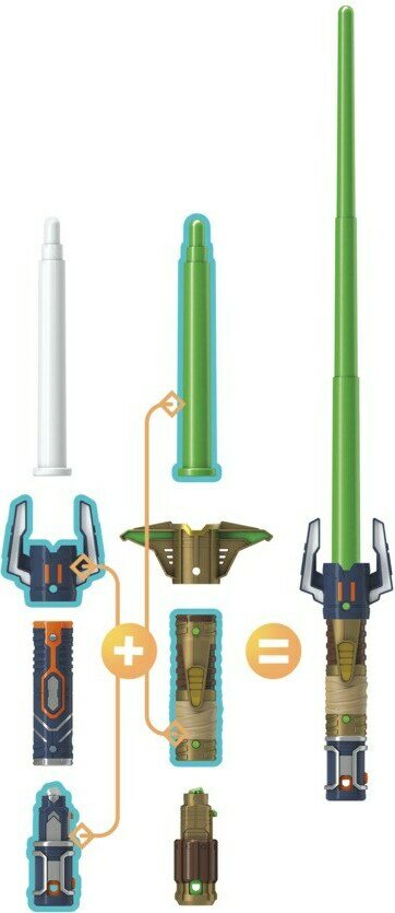 4-osainen muokattava kahva, heilauttamalla pidentyvä miekan varsi, yhdisteltävissä muiden Star Wars Forge valomiekkojen kanssa. Ikäsuositus 4+