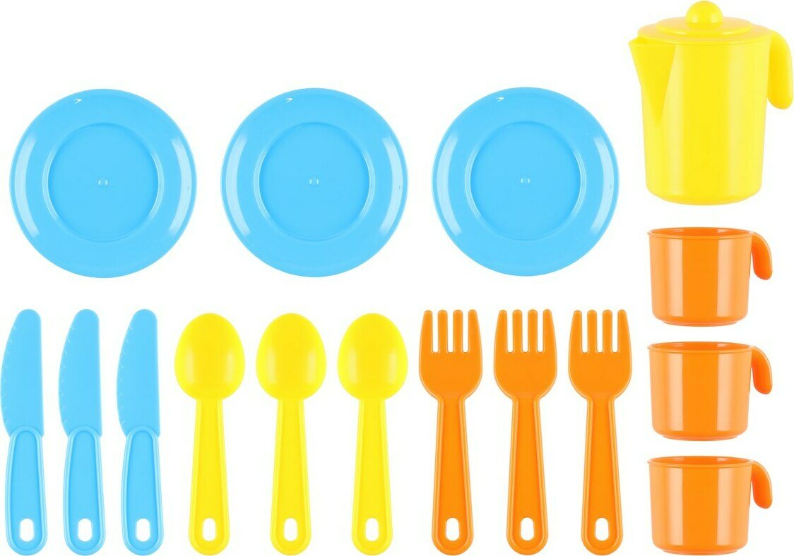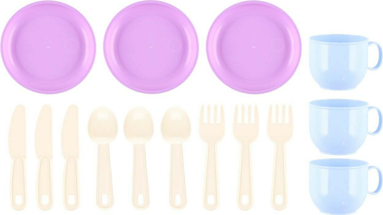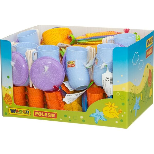 Tuotteen kuvausLajitelmassa teeasiasto kolmelle 13x10x13 cm, 7-osainen leivontasetti 19x14,70x8 cm, 6-osainen ruoanlaitto setti 19,50x14,50x9 cm, astiasto kolmelle 14x11,50x10,50 cm. Ikäsuositus 1+.