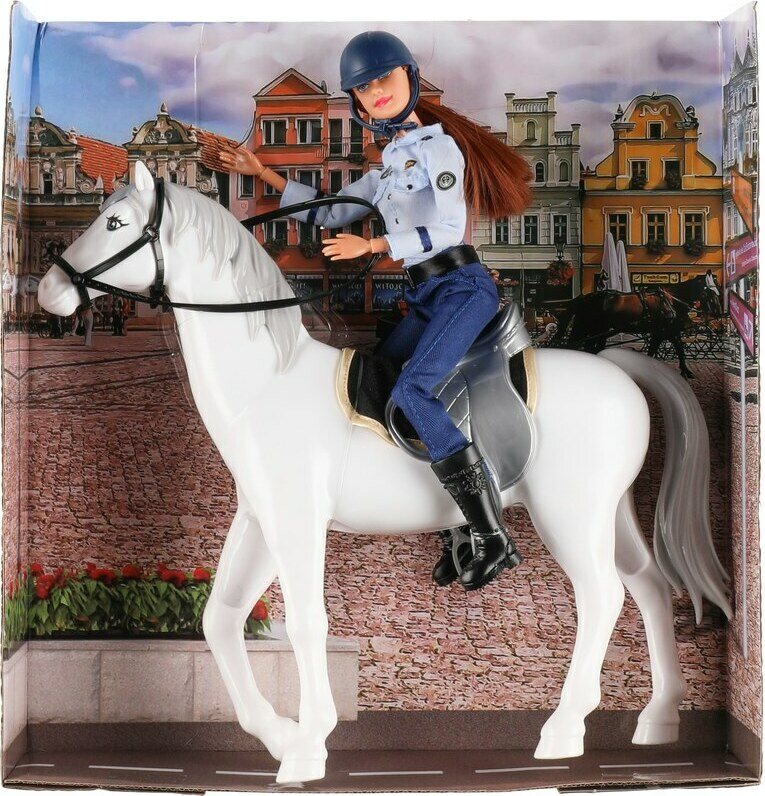 Ratsupoliisi leikkisetti. Nukke 29 cm ja hevonen. Ikäsuositus 3+.