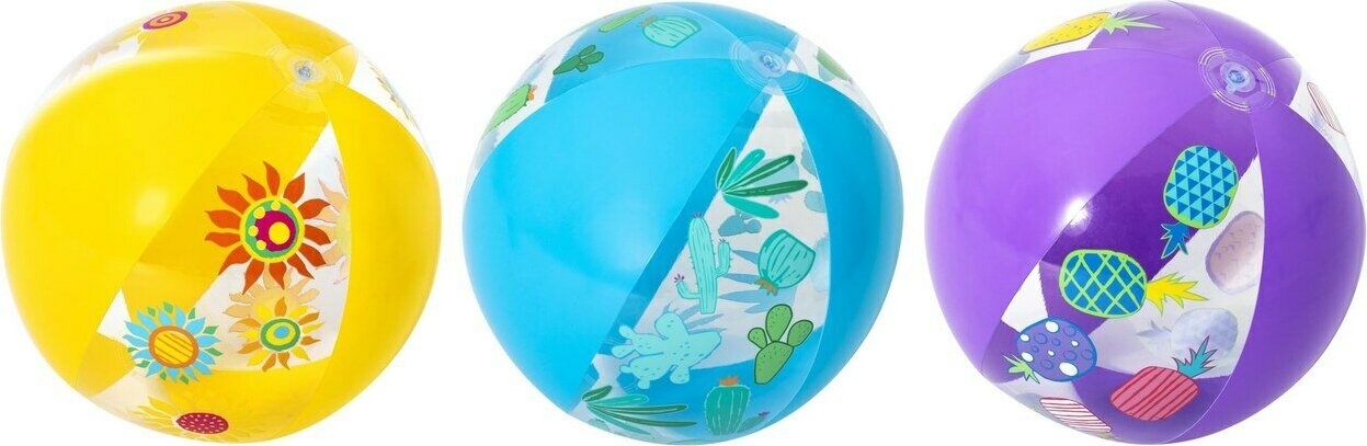 Lajitelmassa kolme erilaista palloa: ananas, kaktus, kukat. Ikäsuositus 2+.