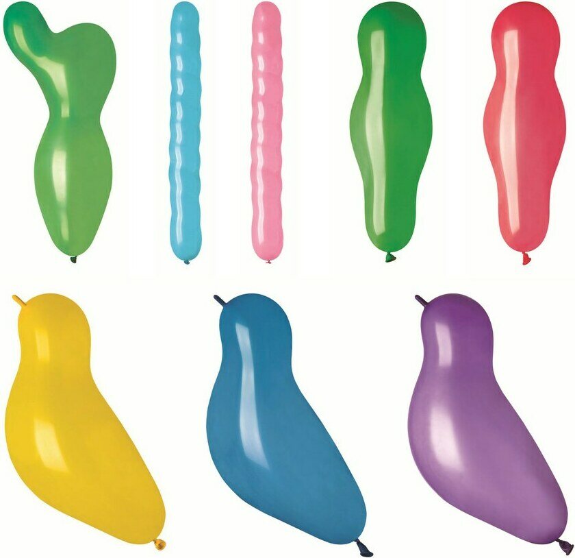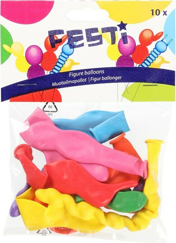 Pakkauksessa 10 kpl muotoilmapalloja eri väreissä.