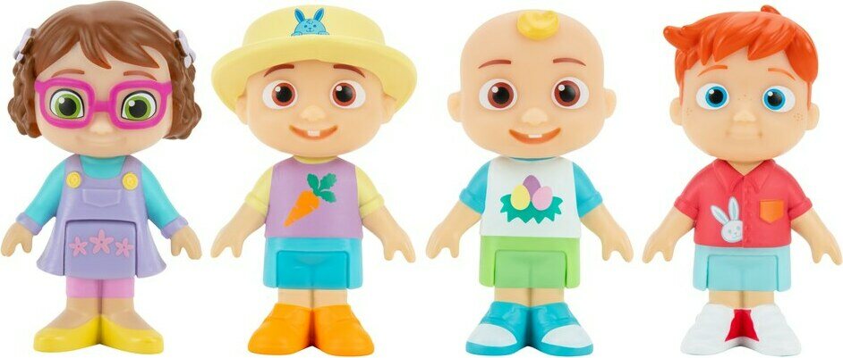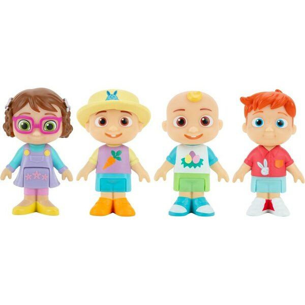 Pakkauksessa on neljä 7 cm:n Cocomelon-hahmoa, joilla on nivelletyt jalat. Ikäsuositus 3+.