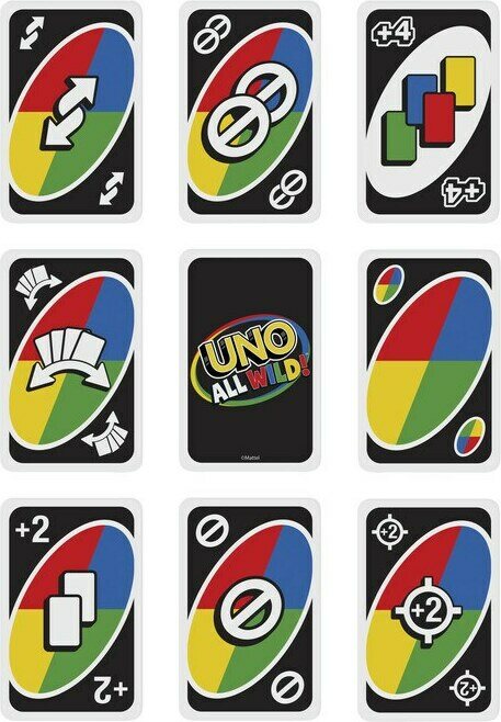Uno All Wild on villiintynyt Uno-peli, jossa kaikki pelattavat kortit ovat villejä erikoiskortteja ja mukana on myös aivan uusia toimintakortteja. Tavoite on edelleen sama – päästä ensimmäisenä eroon kaikista korteista. Ikäsuositus yli 7-vuotiaille.