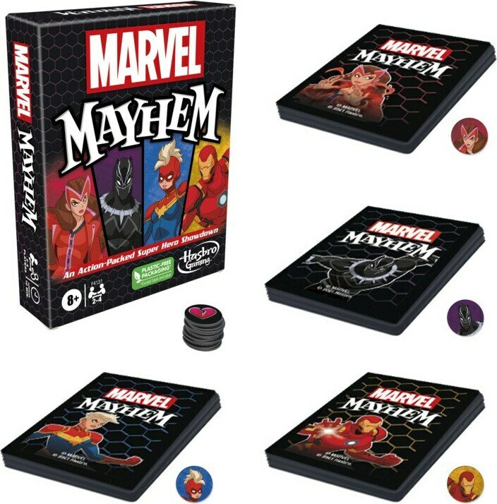 Tuotteen kuvausOle viimeinen pelaaja jäljellä ja voita! Pelaa yhtenä neljästä Marvel -sankarista - Iron Man, Captain Marvel, Scarlet Witch tai Black Panther. Jokaisen sankarin temppuja, varusteita ja taitoja edustaa korttipakka.