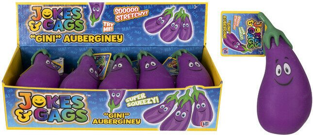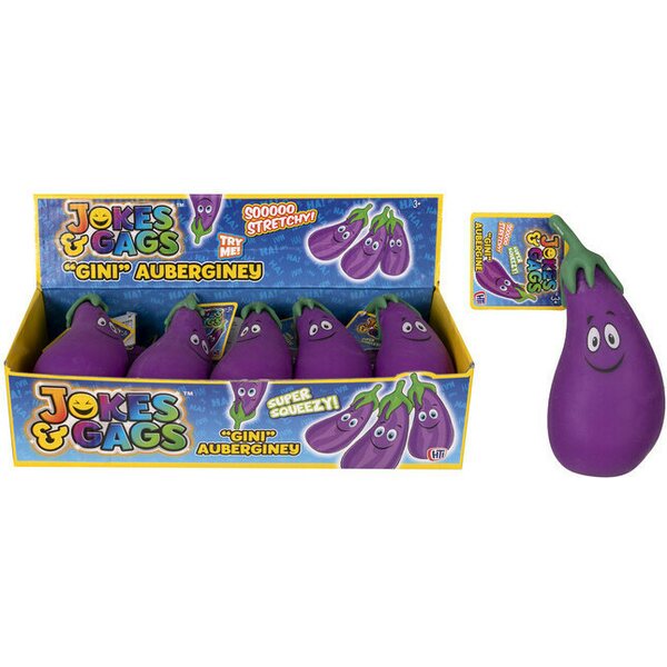 Gigi Aubergine on venyvä, vanuva, puristeltava ja heiteltävä munakoiso. Hauska lelu pyöritellä käsissä. Korkeus 15cm. Ikäsuositus yli 3-vuotiaille.