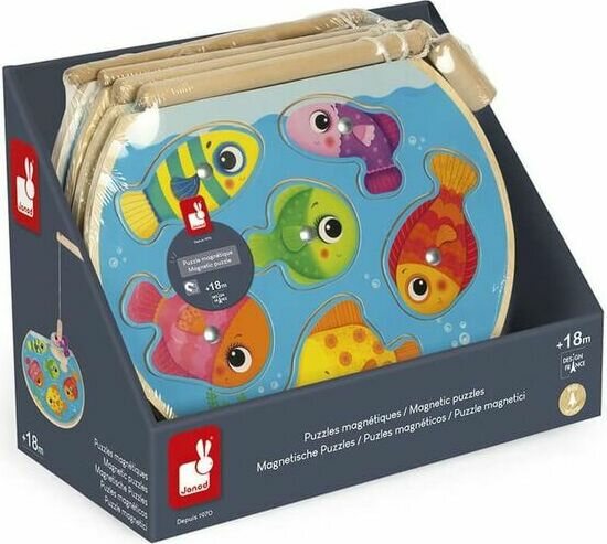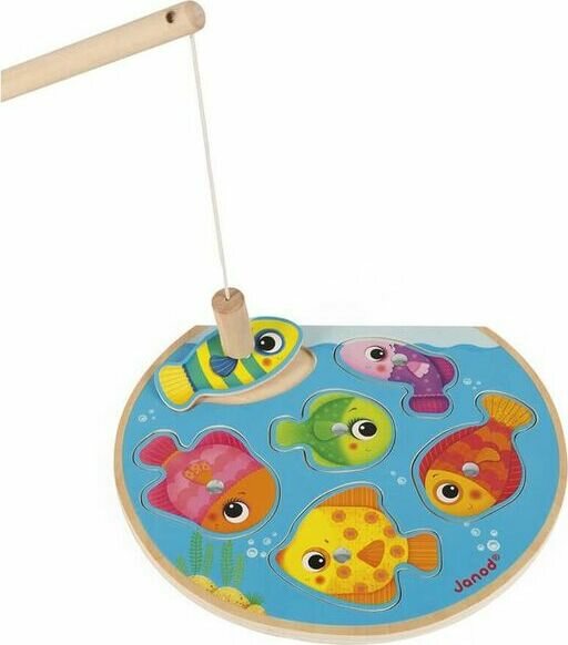 Nappaako kala? Saatko napattua magneettisella ongellasi kalat ja laitettua ne taas takaisin oikeille paikoilleen? Janod Magneettinen ongintapeli on hauska ja monipuolinen peli taaperoille. Magneettisessa ongintapalapelissä on lasta miellyttävät kirkkaat värit.