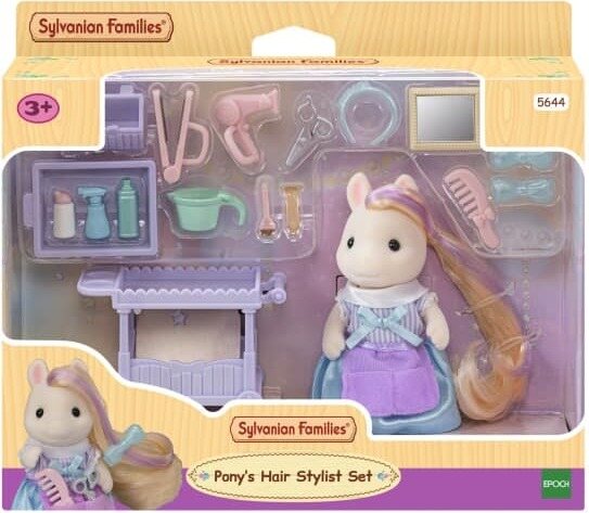 Settiin kuuluu ponityttö ja kampaajan kärry täynnä erilaisia kampaajan tarvikkeita. Hahmolla on liikkuvat pää, kädet ja jalat sekä puettavat vaatteet. Samettisen pehmeä hahmo on kooltaan 8cm. Ei alle 3-vuotiaille lapsille.