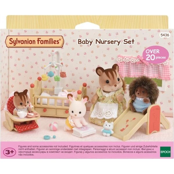 Setti sisältää vauvasängyn, syöttötuolin, liukumäen, mobilen, lautasen ja leluja. Ei alle 3-vuotiaille lapsille.