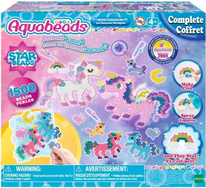 Pakkaukseen sisältyy yli 1500 helmeä, sommittelutaulu, ripustimia sekä mallit ja suihkutin. Ei sovellu alle neljävuotiaille lapsille.