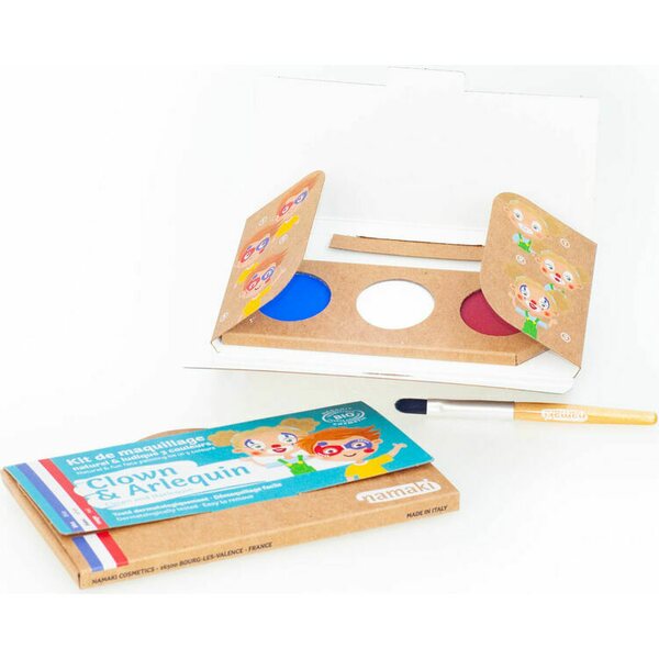 Namakin kasvovärit ovat luonnonmukainen ja turvallinen valinta meikkileikkeihin ja naamiaisiin. Tuotteet on testattu dermatologisesti ja niiden orgaanisilla ainesosilla on pyritty minimoimaan myös allergiariskiä. Sertifikaatit, kuten Ecocert ja Cosmebio, kertovat sekä yrityksen ympäristövastuullisuudesta että lopputuotteen myrkyttömyydestä ja luonnonmukaisuudesta. Namakin tuotteet on valmistettu Ranskassa ja Italiassa eikä niitä ole testattu eläinkokein. Eläinkokeet on kielletty Euroopassa ja laki koskee myös tuotteen ainesosien testausta. Käytä kasvovärejä veden kanssa ja levitä iholle siveltimen tai sienen avulla. Meikinpoistoon suosittelemme haaleaa vettä ja hellävaraista saippuaa. Anna väripaletin kuivua ennen kannen sulkemista. Tämä setti riittää jopa 10 kasvomaalauksen tekemiseen! Kasvovärit säilyvät avattuina 12kk.