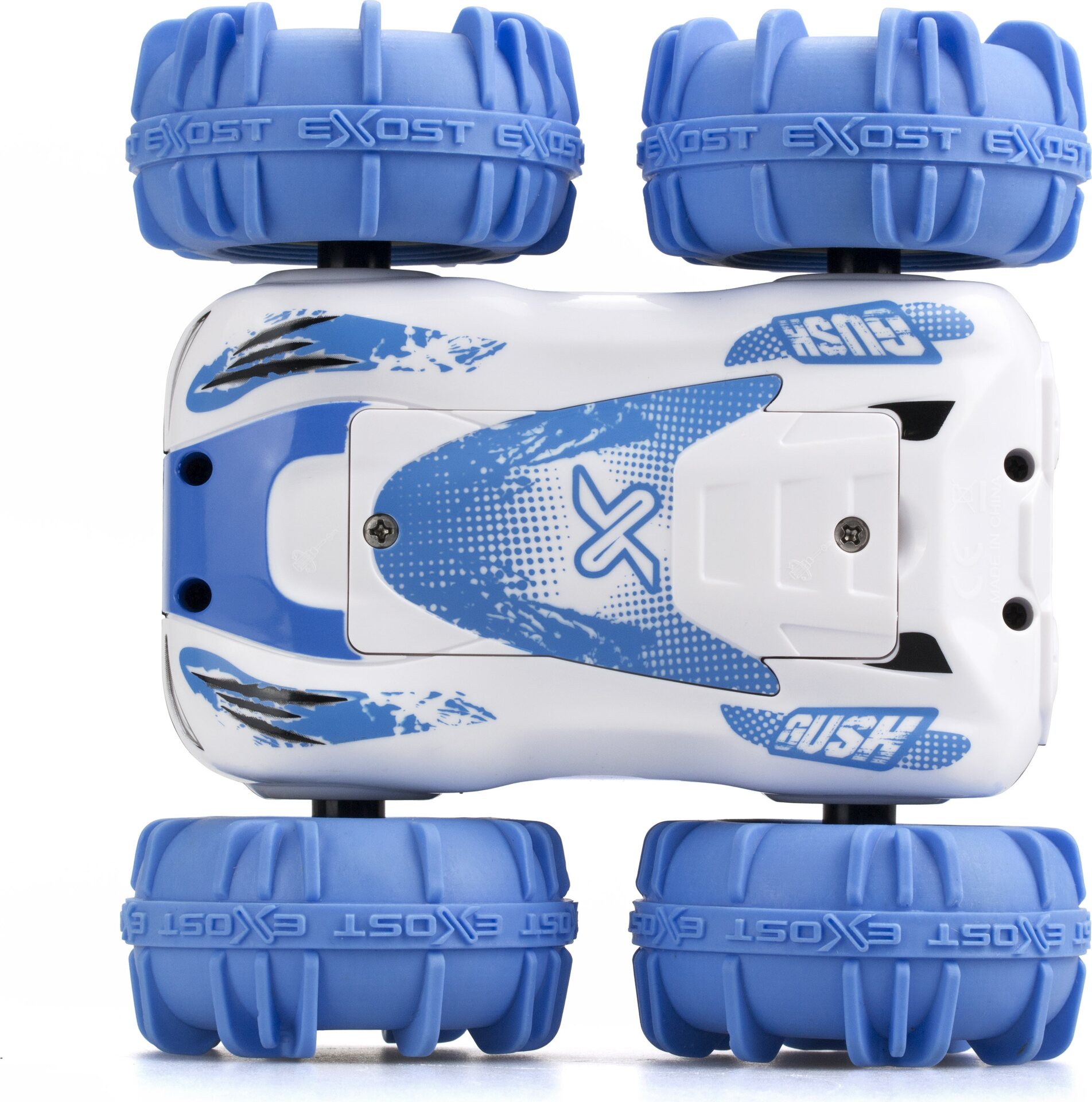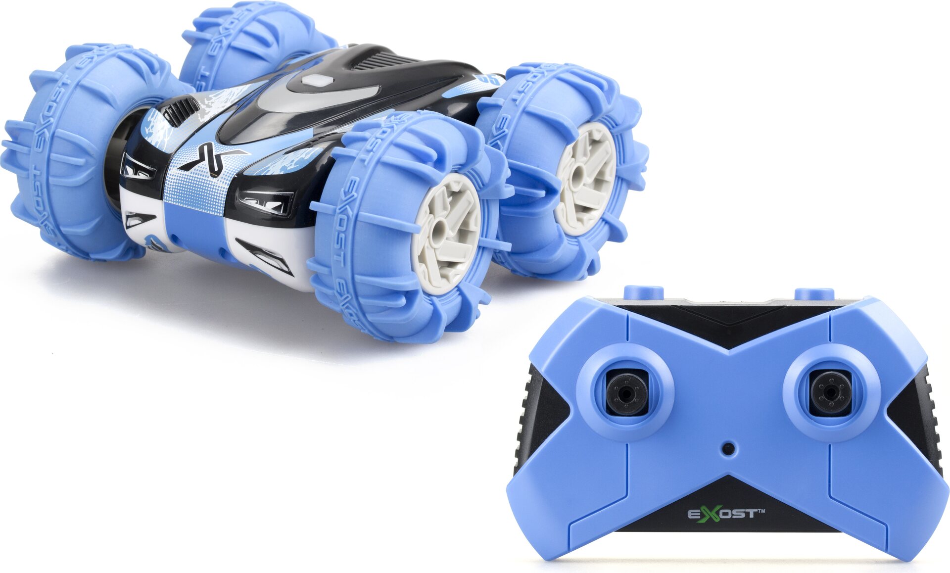 Exost 360 Aquacross. Exost 360 Aquacross kauko-ohjattavalla voit ajaa vedessä tai maastossa. Täyden toiminnon ohjaus, ABS-runko, pehmeät Exost renkaat, kaksipuolinen ajomahdollisuus, kantosäde max 25m. Ajoaika20min. Latausaika 70min. 5+