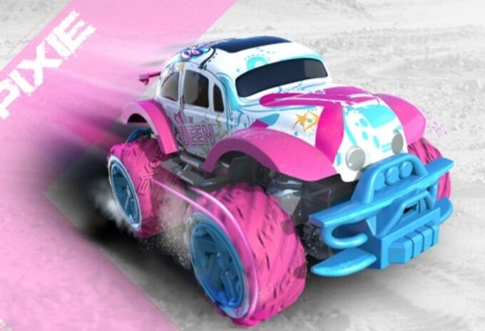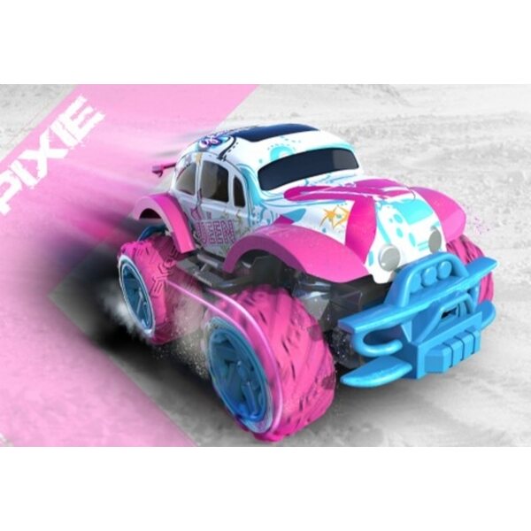 1:34 Exost mini Pixie kauko-ohjattava maasto-auto. Tyylikäs pinkki kuosi ja näppärä koko. Maastorenkaat, Iskunvaimennin, Upea muotoilu, merkkivalo ja täyden toiminnon ohjaus. Ajoaika 25min. Kantosäde max 20m. 5+