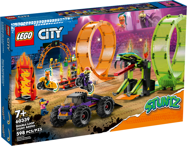 LEGO City leikkisettien parissa lapset singahtavat suoraan keskelle roolileikkeihin innostavaa toimintaa aidon näköisten ajoneuvojen, monipuolisten rakennelmien ja hauskojen hahmojen parissa. Yhdistä tämä setti LEGO City Stuntz sarjan muihin tuotteisiin, niin saat leikkeihin entistä enemmän ällistyttävän huikeita stunttitemppuja.Upeita stuntteja – LEGO® City Kahden silmukan stunttishow’n areena (60339) lelusetti innostaa vauhdikkaiden stunttiesitysten ja ‑kilpailujen pyörteisiinMitä pakkaus sisältää? – Stunttiareena sisältää kaarevan sisäänkäynnin, käärmesilmukan, tulisilmukan, liekkiseinän, monsteriauton, myyntikojun, katsojakorokkeen, 2 stunttimoottoripyörää ja 7 minihahmoaHauskoja toimintoja – Moottoripyörät singahtavat liikkeelle vauhtipyörän voimin ampaisten liekkiseinän halki ja käärmesilmukan ympäri sytyttäen lopuksi tulisilmukanToimintalelujen ystäville – LEGO® City Stuntz lelusetit sopivat syntymäpäivä‑ tai yllätyslahjaksi lapsille 7-vuotiaasta alkaenMitat – Areena sisältää lukuisia tarvikkeita, kuten tulisilmukan. Valmis rakennelma on 20 cm korkea, 16 cm leveä ja 34 cm syväSisältää hauskoja LEGO® tarvikkeita – Tämä Stuntz-leikkisetti sisältää hauskoja tarvikkeita, kuten mehujään, limsan ja kameranRakenteluhupia temppufaneille 7-vuotiaasta alkaen – Sisältää selkeät painetut rakennusohjeet kaikille malleilleLuoviin leikkeihin innostava lelu – LEGO® City Stuntz lelusetit sisältävät rakennelmia, ajoneuvoja ja hahmoja, jotka innostavat lapset vauhdikkaisiin mielikuvitusleikkeihinTaatusti laadukas – Kaikki LEGO® osat täyttävät alan tiukat standardit, joten ne ovat tasalaatuisia, yhteensopivia ja kiinnittyvät luotettavasti kerta toisensa jälkeen – näin on ollut jo vuodesta 1958Turvallisuus ennen kaikkea – LEGO® osia pudotetaan, kuumennetaan, litistetään, väännetään ja analysoidaan perusteellisesti. Näin varmistamme, että ne täyttävät tiukat kansainväliset turvallisuusstandardit
