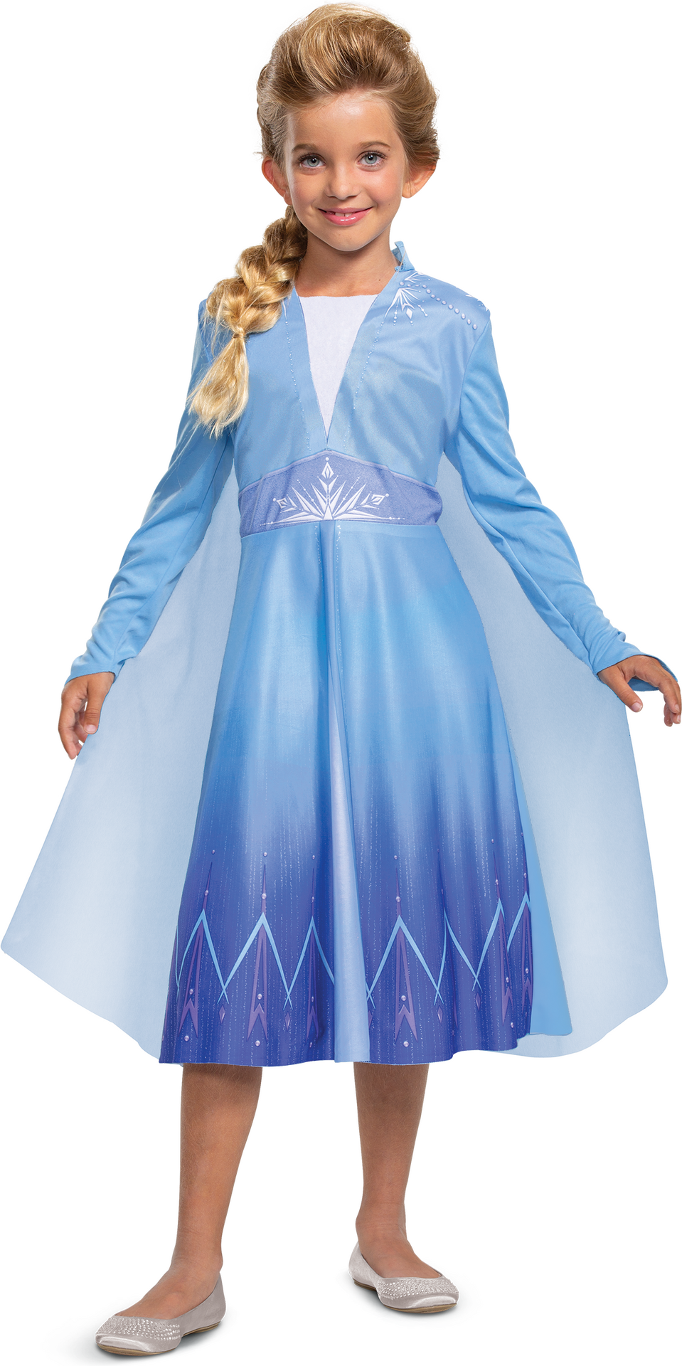 Tämä mekko on saanut inspiraationsa Elsan ikonisesta muodista Frozen 2 elokuvasta. Upeassa mekossa on läpinäkyvä viitta ja jääkristalliyksityiskohdat.