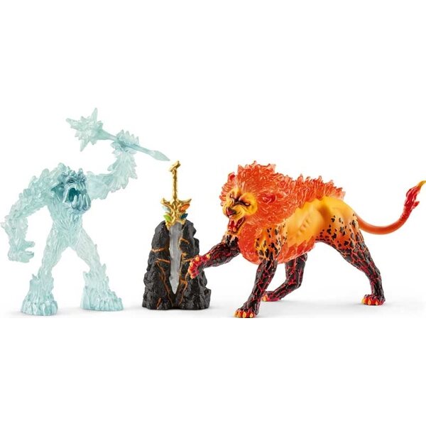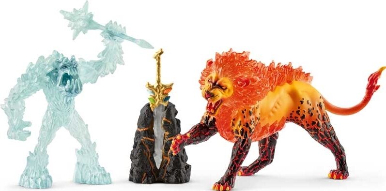 Tuotteen kuvausPakkashirviö on lähtenyt laavamaailmaan noutaakseen itselleen salaperäisen miekan laavalohkareesta! Sen omistaja on lähes voittamaton, sillä se on suojassa muilta elementeiltä! Lisäksi sen maailman elementti laajentuu, jossa se on, kaikkiin ympäröiviin maailmoihin. Pakkashirviö tarvitsee superaseen estääkseen laavamaailman laajentumisen ja pelastaakseen jäämaailmansa. Mutta tehtävä on vaarallinen: Ase on tiukasta laavalohkareessa laavamaailman syvyyksissä! Lisäksi siellä odottaa vielä tulileijona, joka koostuu lähes kokonaisuudessaan hehkuvasta kivestä ja jolla on palava liekkiharja. Miekan ansiosta se on lähes voittamaton. Mutta vain lähes: Pakkashirviö voi peitota tulileijonan giganttisella piikkinuijallaan, jossa on veitsenteräviä jääpiikkejä! Ja se joka koskee sen kehon piikkeihin, jäätyy välittömästi! Tuli vastaan jää – eeppinen kamppailu on alkanut! 7+.