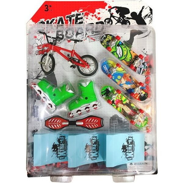 Sormiskeittailun ja pyöräinen kaikenkattava leikkisetti. Mukana erilaisia temppuvälineitä sekä kolme ramppia. Ikäsuositus 3+ vuotta. Tuotteen mittatiedot: 23 x 31,5 x 4 cm – 0,161 kg