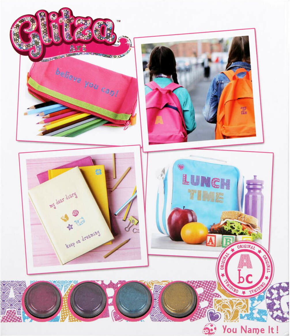 Tuotteen kuvausGlitza You name it! -pakkauksessa on 4 erilaisia isoja ja pieniä kirjaimia sisältävää siirtokuva-arkkia, 4 glitterpurkkia, ohjeet sekä suti: kaikki mitä tarvitset Glitzaukseen. Sopii iholle, tekstiileihin ja monipuolisesti erilaisiin materiaaleihin paperista metalliin, koruihin - mihin vain. Koristele säihkyvän persoonallisesti mitä haluat, helposti ja vaivattomasti.Glitzaus valloittaa niin lapset kuin aikuisetkin nyt myös Suomessa! Se on luovaa ja lumoavaa koristelua, helppoa ja vaivatonta: ihan kaikille kauneudesta ja koristeista kiinnostuneille, kaiken ikäisille. Glitzauksella saa ylellistä mihin tahansa: kimallusta laadukkaalla ja hienojakoisella glitterillä, kuitenkaan sotkematta ja tahraamatta. Koriste on pysyvää, mutta halutessa sen saa helposti poistettua. Sopii monenlaisille pinnoille. Glitzaa mitä haluat!Glitza You Name it! -paketissa on neljä siirtokuva-arkkia, neljä glitterpurkkia, yksi suti sekä kirjalliset ohjeet glitzaamiseen. Siirtokuva-arkeissa on erilaisilla fonteilla tehtyjä pieniä kirjaimia sekä numeroita ja suuret koristeelliset kirjaimet. Nimikoi mitä haluat!Glitzaaminen on helppoa, vaivatonta ja nopeaa: Valitse vain haluamasi kuvio, leikkaa irti arkista ja aseta valitsemallesi pinnalle. Hiero kuvion päältä ja poista kalvo. Maalaa tämän jälkeen siveltimellä valitsemaasi glitteriä kuvioon ja kun olet valmis, pyyhkäise vain ylimääräiset glitterit pois. Valmis! Se on myös yksilöllistä: valitse kuvio ja yhdistä siihen mitä tahansa haluamiasi glitter-värejä, oman maun ja mielen mukaan. Lopputulos on varmasti persoonallinen, juuri sellainen mistä sinä pidät!Säihkettä päivään!