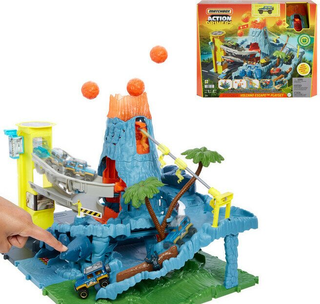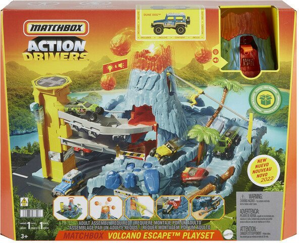 Pelasta tulivuoressa pulassa oleva tutkija ja rymistele jeepillä alas vuorenrinnettä pakoon. Varo lentäviä laavapalloja! Lukuisia jännittäviä toimintoja ja valo- ja äänitehosteita jännittäviin leikkeihin! Sis. 1 auto. Paristot 3 x LR44 sisältyy. 3+