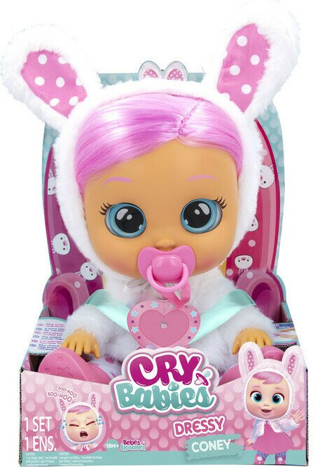 Suloinen Cry Babies -nukke Coney itkee oikeita kyyneliä, jos sen tutti tipahtaa. Laita tutti takaisin, niin se rauhoittuu. Uudistuneella nukella on pehmeät hiukset, uusia äänitoimintoja, yllään päivävaatteet ja pehmeä iho. Sis. paristot 2xAAA. 18 kk+