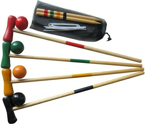 Kroketti on suosittu kesäpeli. Setti sisältää mailat ja pallot neljälle pelaajalle sekä portit ja pelikepit. Ikäsuositus yli 4-vuotiaille.