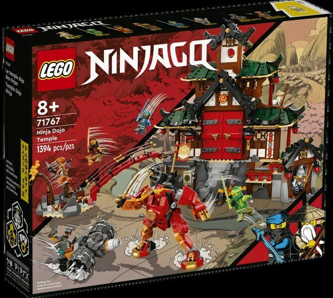 Ninjojen dojotemppeli – Lapset voivat osallistua sankareiden koulutukseen leikeissä, joiden tapahtumapaikkana on 3-kerroksinen LEGO® NINJAGO® Ninjojen dojotemppeli (71767) setti. Dojo koostuu harjoitusalueesta ja 5 huoneesta