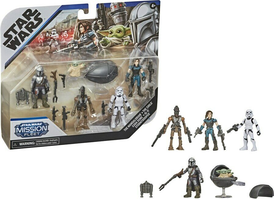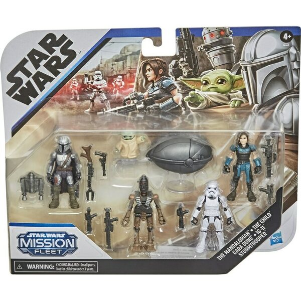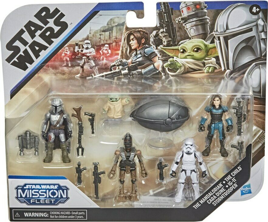 Star Wars Mission Fleet monipakkaus sisältää Mandalorian-, Cara Dune-, IG-11-, Stormtrooper- ja The Child -hahmot, joilla on useita nivelpisteitä. Hahmojen koko 6 cm. Ikäsuositus 4+.