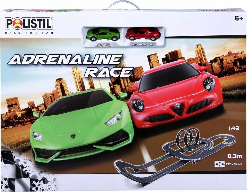 Kootun radan koko 212 x 92 cm, pituus 8,3 m. Sisältää kaksi 1:43 koon kilpa-autoa; Lamborghini ja Alfa Romeo. Ei vaadi paristoja, muuntajalla. Ikäsuositus 6+.