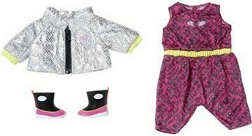 Asusetti 43cm nukelle. Sisältää yksiosaisen asun, takin ja kengät. Ikäsuositus: 3+ vuotta