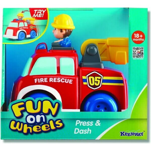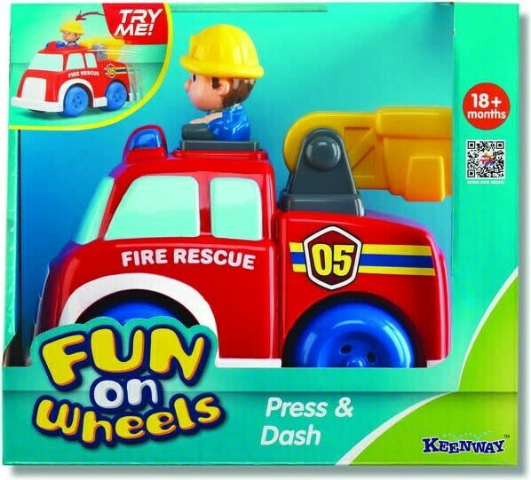 Laadukas ja kestävä paloauto pienimmille palomiehille. Painettava mekanismi laittaa auton kulkemaan eteenpäin ja liikuttaa koria. Koko: 20 cm x 18 cm