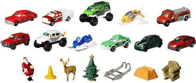 Tämän joulukalenterin parissa joulun odotus sujuu vauhdikkaissa merkeissä. Joulukalenterin 24 luukusta löytyy upeita Matchbox-aiheisia yllätyksiä, joista 10 on autoja. Ikäsuositus yli 3-vuotiaille.