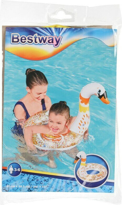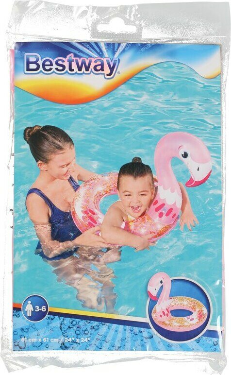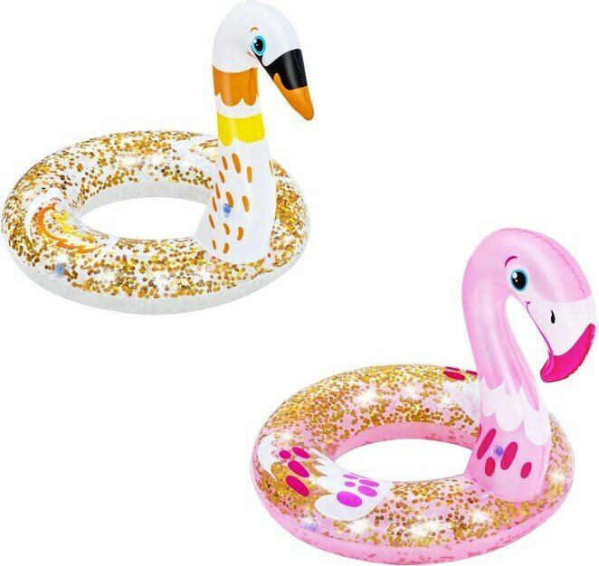 Lajitelmassa kaksi erilaista uimarengasta: joutsen 61x58,5 cm, flamingo 61x61 cm. Ikäsuositus 3-6 v.